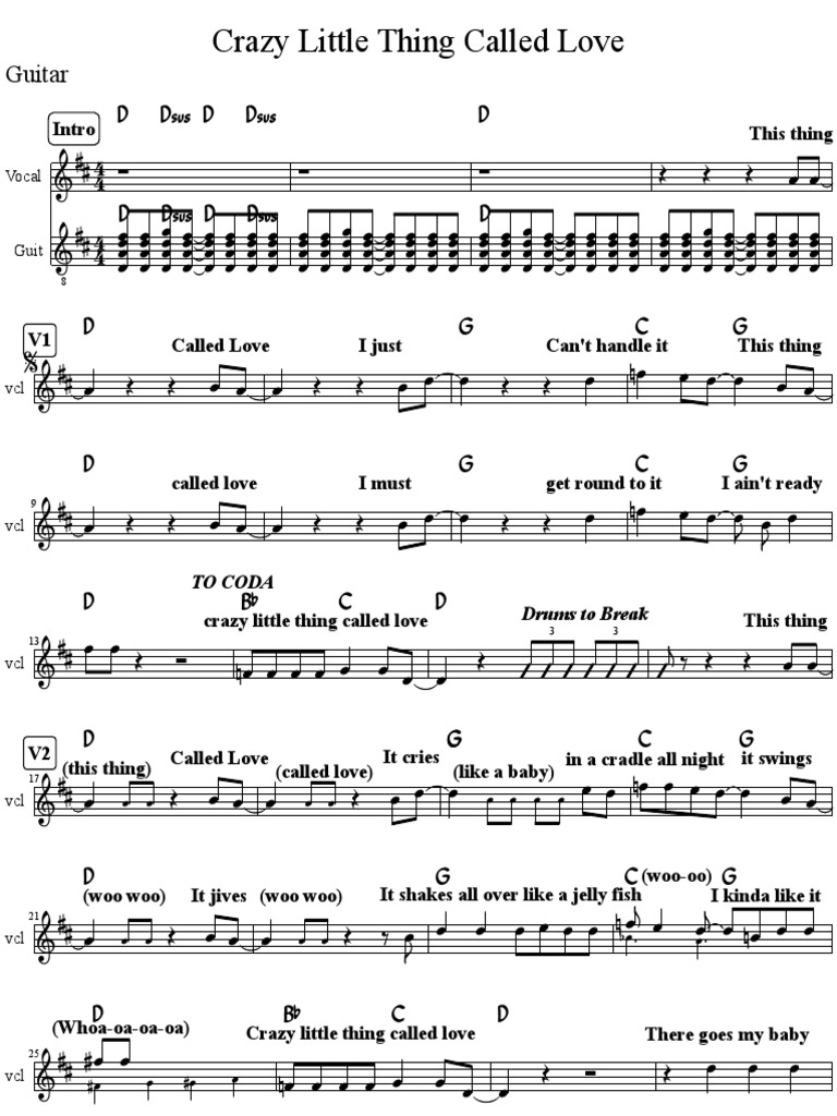 Crazy Little Thing Called Love Sheet Music Pdf Rock Music Recorded Music