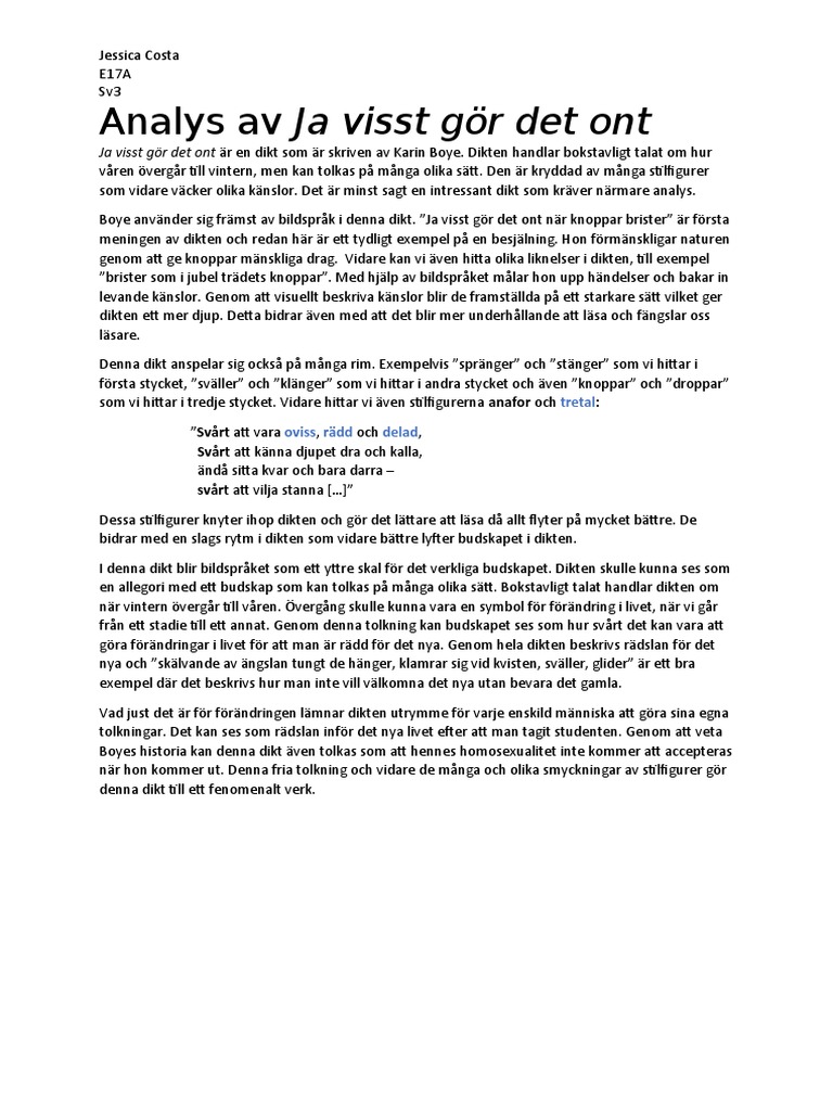 En analys utan frågor Jag har läst dikten Ja visst gör det ont skriven av Karin Boye. Varför skulle annars våren tveka. Visst gör det ont när knoppar brister Svårt att vara oviss rädd och delad. Taylor Matson är en spelare vi kommer att sakna både på och utanför isen. Av Berndt Egerbladh 1932-2004. Och det som stänger. Håkan Karlberg är pensionär utbildad som bergsingenjör vid KTH med anställningar vid LKAB ASEA Gullfiber och Uddeholmsbolaget samt under 25 år konsult huvudsakligen i egen firma. Men si det vill då inte alls hennes. Aktiviteten ökar brett och optimismen är hög generellt sett inom industrin. Ja visst gör det ont när knoppar brister ont för det som växer. För det gör det när man har legat sjuk i öroninflammation i sin fåtölj en vecka och bara vill ha det tyst lugnt och skönt.